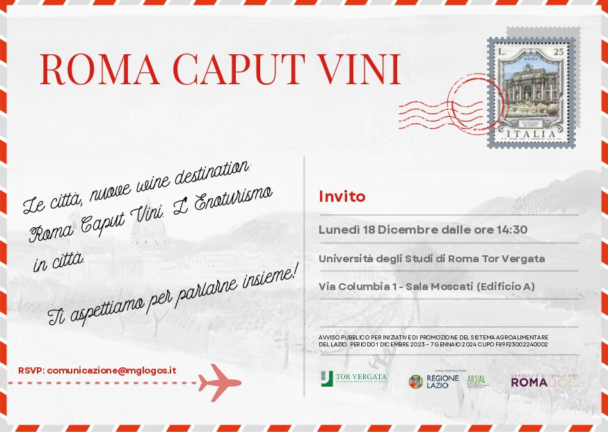 Lunedì 18 dicembre si terrà la tavola rotonda “Le città nuove wine destination”, l’incontro formativo esperienziale che vedrà dialogare docenti, studenti, rappresentanti istituzionali, stampa e professionisti del settore sul futuro dell’enoturismo. L’appuntamento, presso la Sala Moscati della Macroarea di Lettere e Filosofia dell’Università di Roma Tor Vergata, dalle ore 14:30 alle ore 16:30, riguarderà il tema del turismo del vino che entra in città, partendo da Roma che, forse più di tutte, rappresenta il primo vero esempio di metropoli wine destination.
