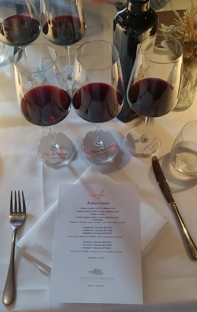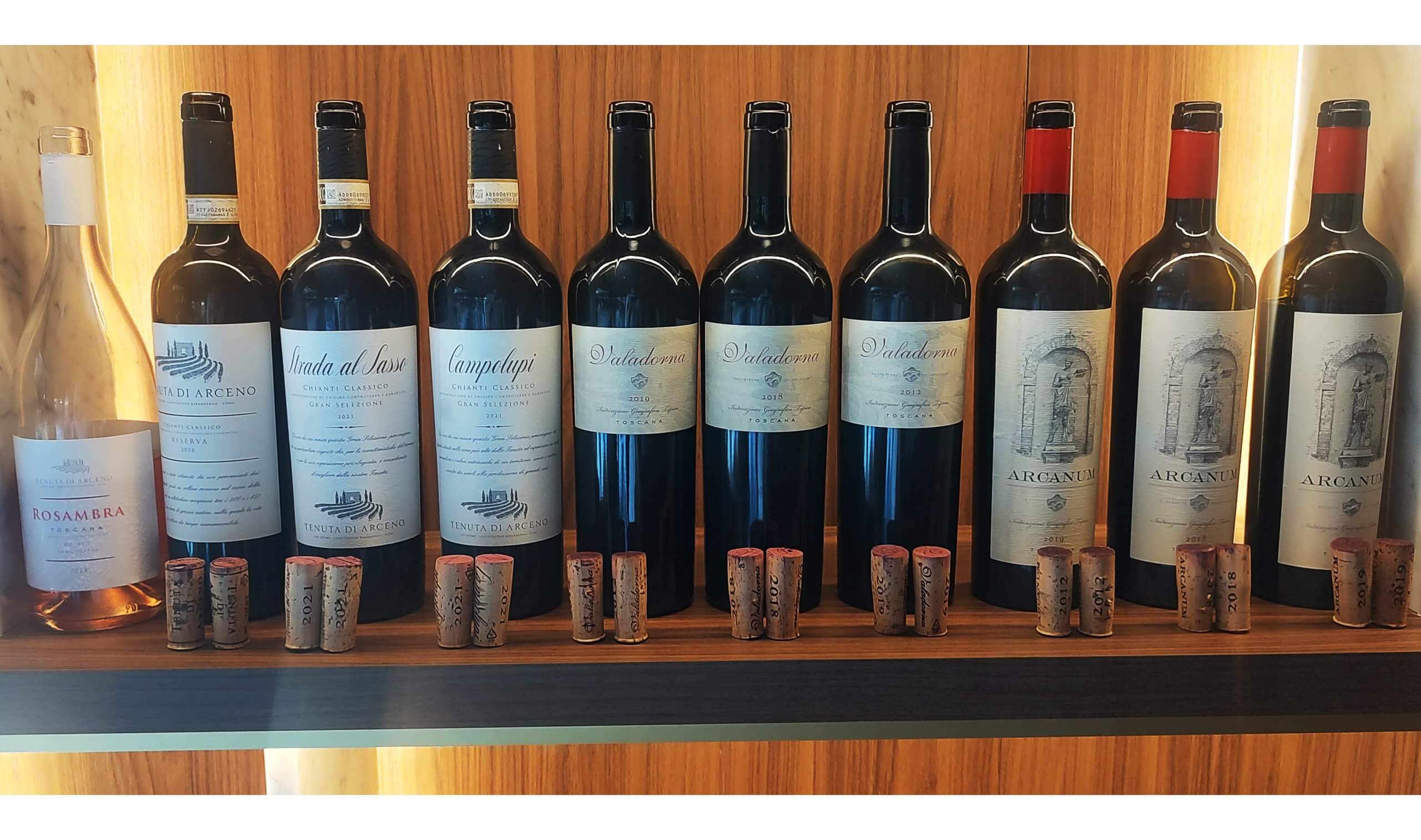 Con queste premesse ci siamo avvicinati all’assaggio dell’ultima evoluzione dell’azienda, che si sta spostando sempre più sui varietali, dando spazio alla doppia anima di Tenuta di Arceno fatta di grande attenzione al Sangiovese ma anche alle uve bordolesi. Per cominciare però subito una novità, dal 2024 è infatti in commercio il Rosambra, il rosato da Sangiovese che sprizza freschezza e bevibilità, frutto di due vigneti differenti per mixare aromaticità e acidità. Solo 3 ore di pressa e poi una lavorazione che punta a mantenere la leggerezza e l’eleganza. A seguire, cercando di immaginare la complessità di gestire gli 80 blocchi distinti in cui è suddivisa l’azienda – con la guida di Pepe Schib Graciani, brand ambassador della tenuta, e dell’enologo Lawrence Cronin – ancora spazio al Sangiovese, ma in rosso, per le tre espressioni di Chianti Classico: Riserva 2020 (qui il vitigno toscano accoglie anche il Cabernet Sauvignon), Strada al Sasso e Campolupi (entrambi Gran Selezione del 2021). Un viaggio tra la capacità di dialogo dei vitigni e il momento giusto per bere la Riserva 2020 e le differenze dei due cru, che possono ancora stare in bottiglia vista la complessità dimostrata, delle due Gran Selezioni. Si passa poi ai varietali bordolesi, con tre annate di Valadorna, che mettono in mostra la capacità espressive del Merlot, cominciando con la 2012 (che ancora prevedeva una cooperazione con Cabernet Franc e Cabernet Sauvignon) per arrivare alle 2018 e 2019 che segnano il cambio di passo sia per l’uvaggio, 100% Merlot, sia per lo stile dell’azienda. A chiudere i “lavori” è arrivato il Cabernet Franc, con l’Arcanum ancora una volta partendo dalla 2012 e dall’inziale blend (con Petit Verdot, Merlot e Cabernet Sauvignon) per arrivare poi alla purezza delle annate 2018 e 2019. Se è evidente il percorso fatto dall’azienda per mettere in bottiglia soprattutto il territorio, puntando alla leggerezza in cantina così da affiancare le espressioni varietali di ogni singolo vitigno, è altrettanto chiaro come ci si trovi di fronte a vini di grande longevità, che probabilmente possono essere definiti giovani. Ma non nel senso che non sono già apprezzabili, quanto piuttosto per il fatto che siamo sicuri possano dare ancora molto in futuro e quindi il consiglio è il classico “compra e metti in cantina”, magari bevendo subito la Riserva 2020 e il Rosambra.