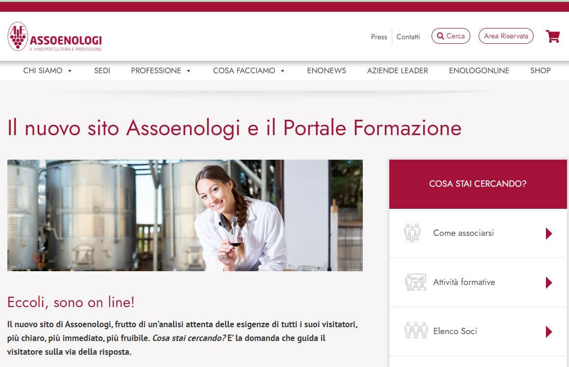 “Un sito più funzionale e ricco di informazioni dove si potrà accedere direttamente alla versione digitale della nostra rivista l’Enologo. Ma soprattutto un nuovo portale dedicato esclusivamente alla formazione con un’offerta formativa di primo livello, grazie alla nostra collaborazione con un qualificato corpo di relatori composto da esperti del settore vitivinicolo, ricercatori e docenti, anche grazie anche all’intesa con il Coordinamento nazionale dei corsi universitari di laurea in Viticoltura ed Enologia. Un valore che si trasforma oggi in una biblioteca di titoli che mettiamo a diposizione di tutti con un’offerta formativa a 360° sia con gli ormai garantiti webinar in diretta, ma anche dalla novità dell’offerta on demand, un nuovo prodotto atto a garantire e rendere sempre più accessibile la possibilità di formazione e aggiornamento professionale”, ha sottolineato il direttore di Assoenologi, Paolo Brogioni.