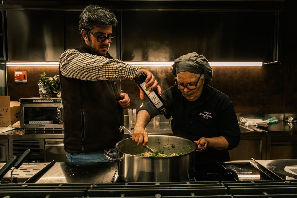 Visita AmaKM0 propone invece un’immersione approfondita nel mondo di Amalberga. Si inizia con la raccolta di ortaggi e verdure direttamente nell’orto della proprietà, per poi proseguire con un tour in cantina e concludere con un pranzo di quattro portate, abbinato a quattro calici selezionati. Anche questa esperienza dura due ore.
