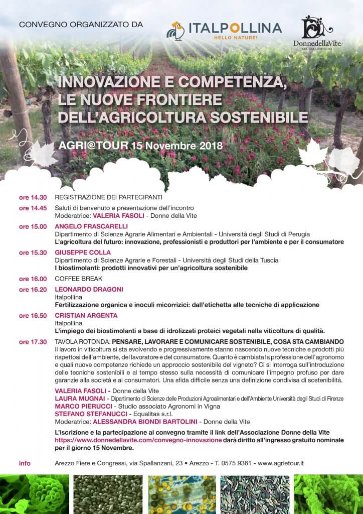 Le Donne della Vite saranno presenti ad Agri@Tour 2018 (Arezzo 15 Novembre ore 14.30) con un convegno organizzato in collaborazione con Italpollina dal titolo "Innovazione e competenza, le nuove frontiere dell'agricoltura sostenibile" a testimonianza dell’impegno e dell’attenzione dell’Associazione alla sostenibilità e alla ricerca di tecniche…