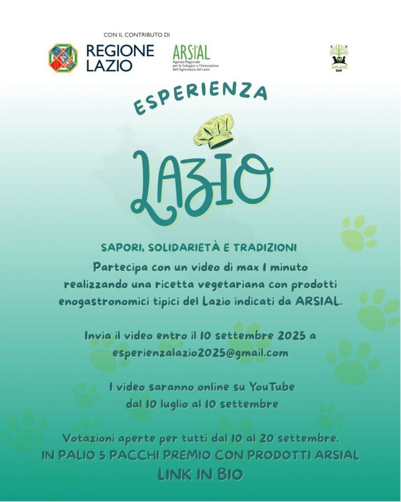 L’Associazione ambientalista e animalista Amant Odv presenta “Esperienza Lazio: Sapori, Solidarietà e Tradizioni”, un progetto innovativo dedicato alla valorizzazione delle eccellenze agroalimentari del Lazio, realizzato con il contributo di Arsial e della Regione Lazio, con un focus speciale su sostenibilità,…