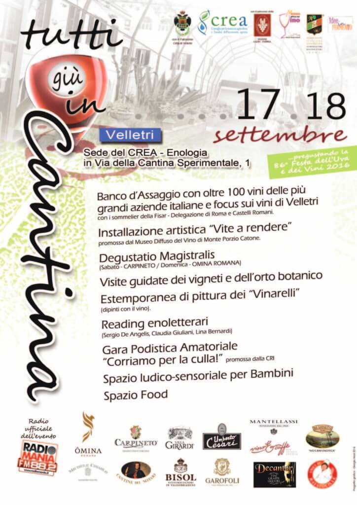 VELLETRI - Centinaia di persone hanno affollato il CREA Viticoltura Enologia di via della Cantina Sperimentale, pregustando l’86esima Festa dell’Uva e dei Vini Se l’obiettivo era di portare una ventata di freschezza nelle manifestazioni cittadine, “Tutti giù in cantina” 2016…