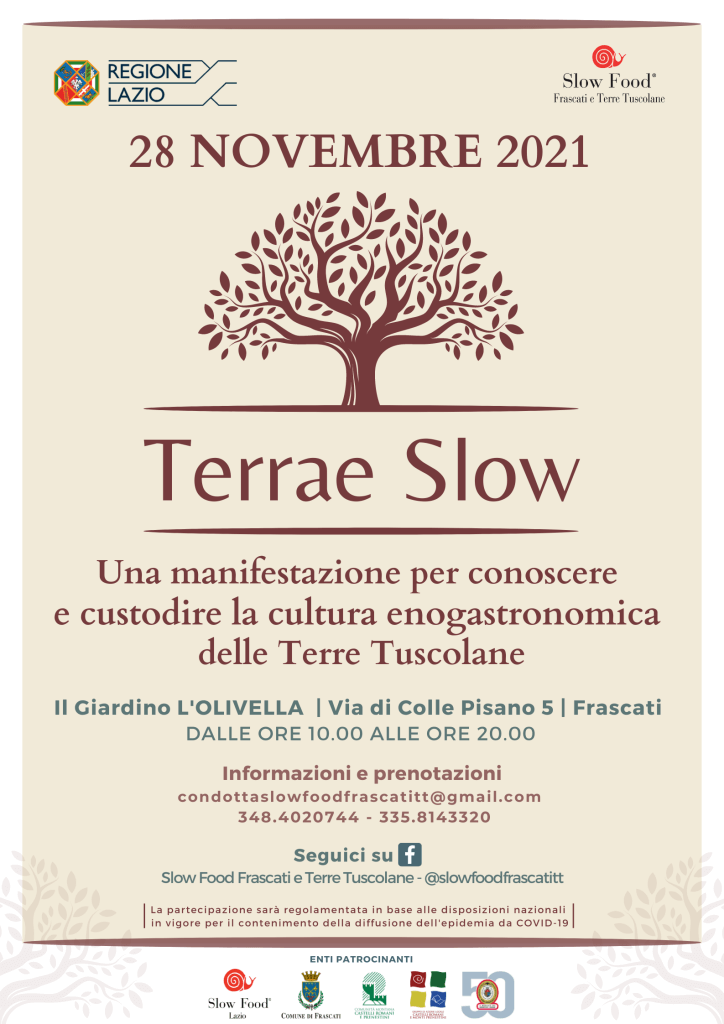 Si preannuncia ricco di eventi il programma di ‘Terrae Slow’, l’iniziativa ideata e promossa dalla Condotta Slow Food Frascati e Terre Tuscolane, con il supporto istituzionale della Regione Lazio e il patrocinio di Slow Food Lazio, Comune di Frascati, GAL…
